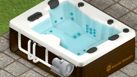 A Regenerative Blower is being used to push air into a spa to create bubbles. Many of our smaller Regenerative Blowers can replace your current residential system with twice the efficiency.