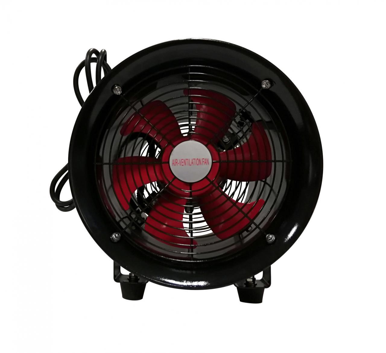 Atlantic Blowers’ ABAF-8-220E Three Phase Axial Fan can be used for various low pressure, high airflow applications. The ABAF-8-220E produces a maximum flow of 1059 CFM. The maximum pressure is 1.2 inH2O. The ABAF-8-220E has a power output of 0.3 HP (0.23 kW) with speeds of either 3000 or 3600 RPM (50/60 Hz dual frequency). The voltage is 220V-275V. Measuring at a distance of 3 ft. the fan will produce a noise level of 61 dbA. The impeller diameter is 8″.